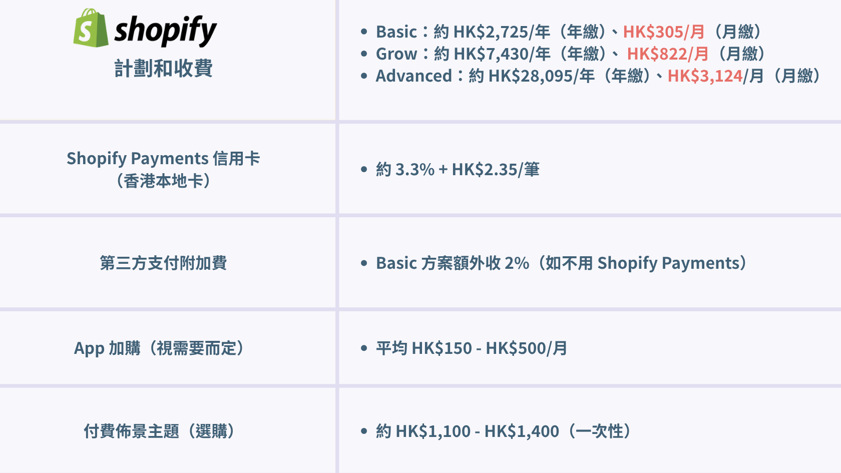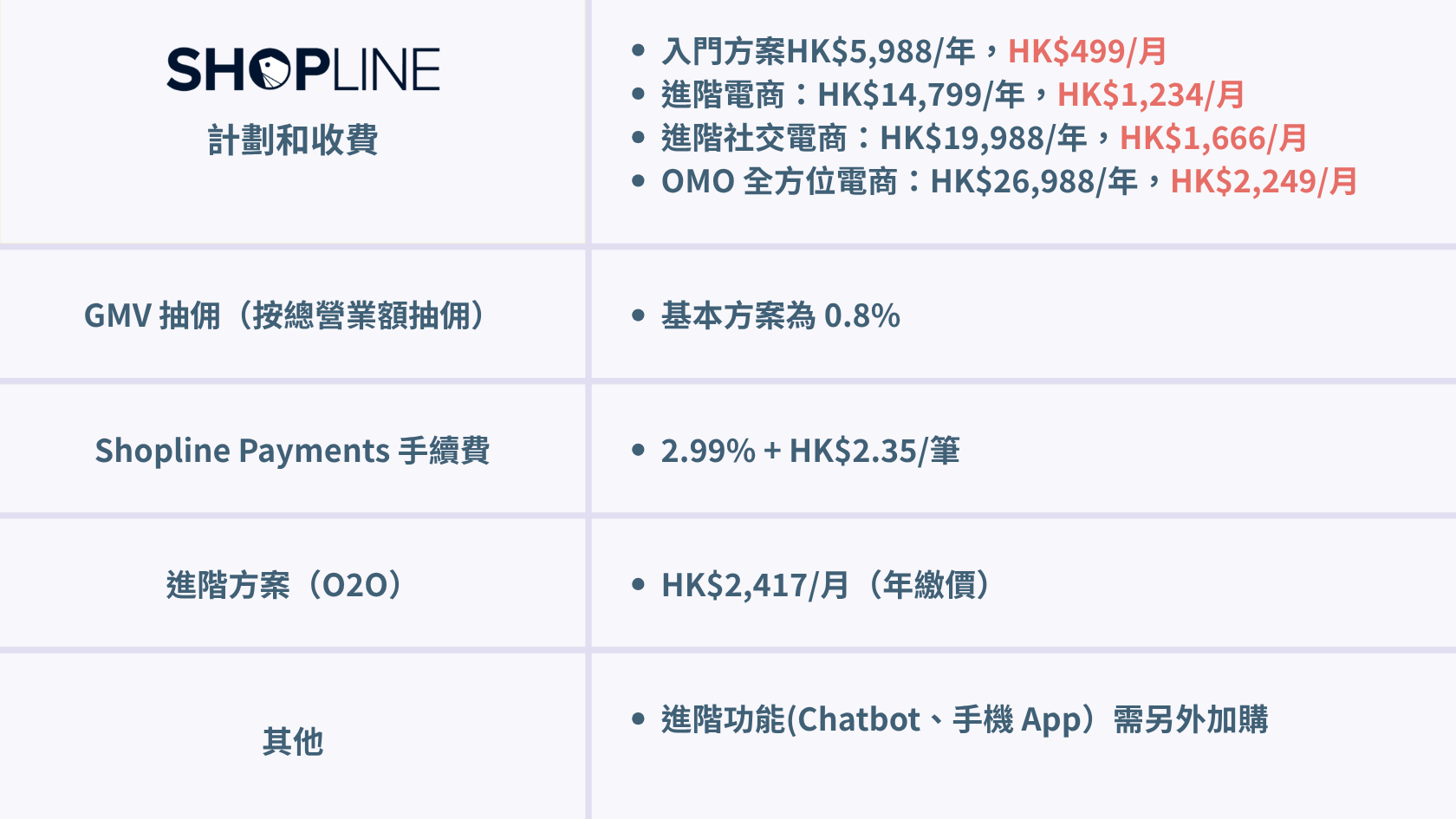 資料來源:Shopline 香港官方定價頁